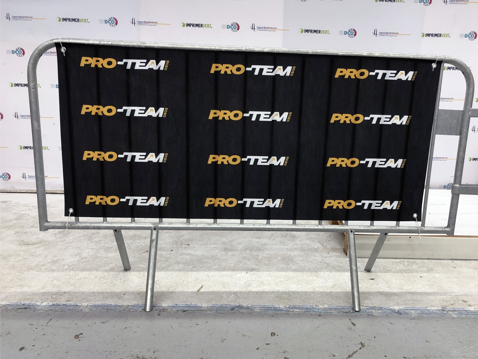La housse micro-perforée est un support ajouré permettant de laisser passer 50% du vent. Ce support économique et résistant aux vents est parfait pour des petites banderoles sur barrières de sécurité ou barrière de police. La bâche micro-perforée (ou bâche mesh, grille) est ensuite imprimée en UV ou éco-solvant pour résiter au soleil. Cette méthode permet ainsi une tenue parfaite des couleurs en extérieur.